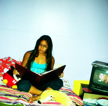 I am lying on her bedroom floor, reading her fanfics, asking her for the next chapter. My hand against her forehead in the throes of her feverish lovesickness, giggling and crying alongside her, through it all.